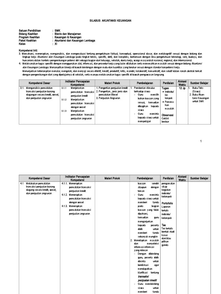 Silabus akuntansi keuangan smk kelas xi kurikulum 2013/ k13, semester 1 dan semester 2.